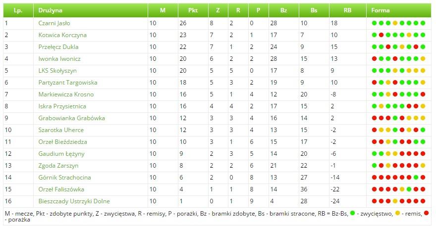 Za nami 10. kolejka spotkań w klasie O Krosno. Wicelider Kotwica Korczyna pokonał 2-1 Orła Bieździedza.