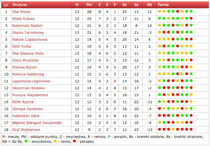 Remis w Tarnobrzegu daje Stali Mielec utrzymanie pozycji lidera bez względu na wyniki pozostałych spotkań. Podopieczni Janusza Białka nad drugą w tabeli Wisła Puławy mają obecnie cztery punkty przewagi (puławianie dopiero rozegrają swoje spotkanie).
