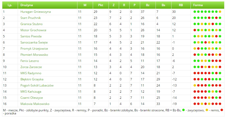 W 11. kolejce klasy O Jarosław Granica Stubno pokonała 2-0 Motor Grochowce. Zespołem bez porażki pozostaje tylko Huragan Gniewczyna.