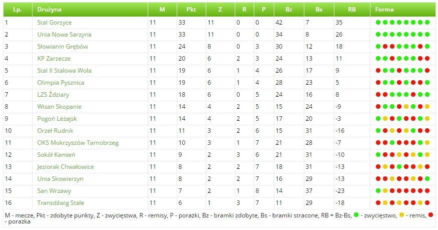 Stal Gorzyce: Siembida - K. Wegliński (46. M. Węgliński), Pachla, W. Urbanik, Cupak, K. Urbanik, P. Cichoń, R. Wojtas, P. Wojtas, Gruszczyk (72. Syrka).