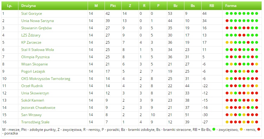 Stal Gorzyce: Paź - Idec, Syguła, Bernaś, Radzimowski - B. Leśniowski, Świąder, Pietrucha (30. Wiśniewski), M. Leśniowski - Korzonek, Sojecki (66. Falasa).
