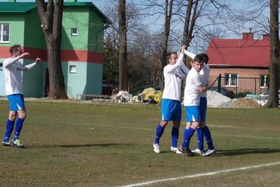 Pierwszy gol w tym spotkaniu padł w samej końcówce pierwszej połowy. Jakub Saj zagrał do Daniela Fryca, a ten umieścił piłkę w siatce dając prowadzenie miejscowym.