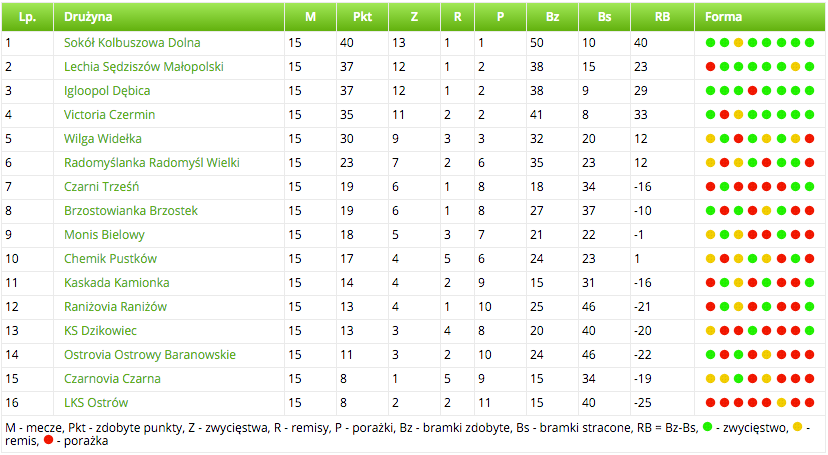 Ostrovia Ostrowy Baranowskie niespodziewanie wygrała w Sędziszowie z miejscową Lechią. W ostatniej kolejce rundy jesiennej punktów nie zgubił lider z Kolbuszowej Dolnej.