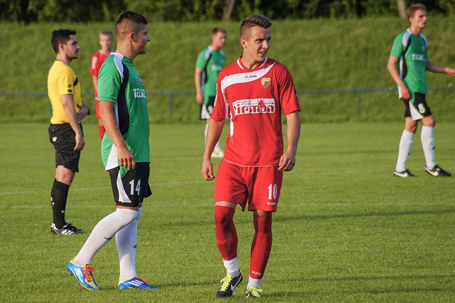 Daniel Paszek (w czerwonym stroju) grał ostatnio na wypożyczeniu do Polonii Łaziska Górne (fot. polonia.laziska.pl)