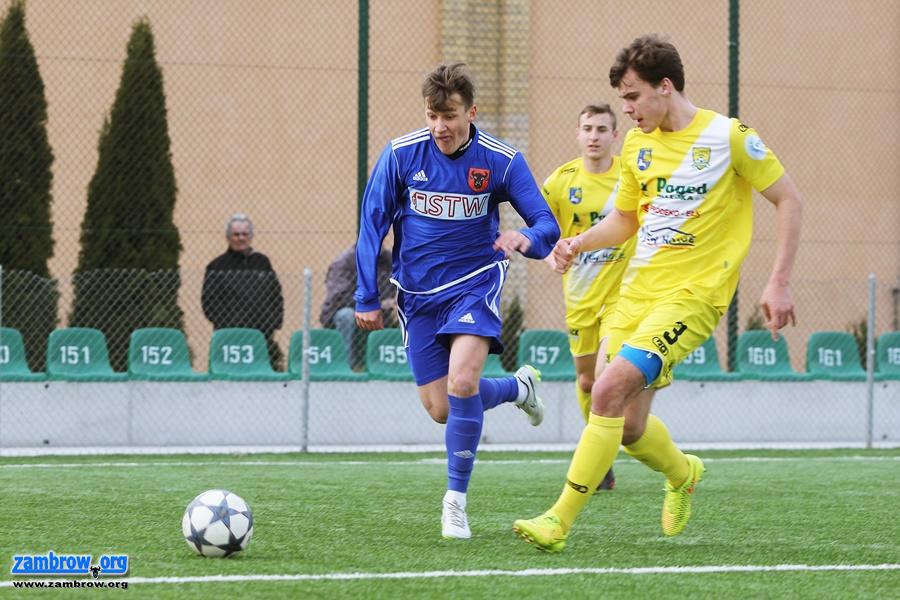 Mateusz Gul (z lewej, jeszcze w barwach Olimpii Zambrów) był na testach w Siarce Tarnobrzeg. Teraz sprawdza go Lechia Tomaszów Mazowiecki (fot. zambrow.org)