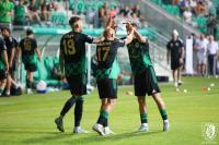 Już w 2. minucie gospodarze otworzyli wynik spotkania. Po rzucie wolnym rozegranym po ziemi piłka trafiła do Dawida Wolnego, który mocnym strzełem pokonał...
